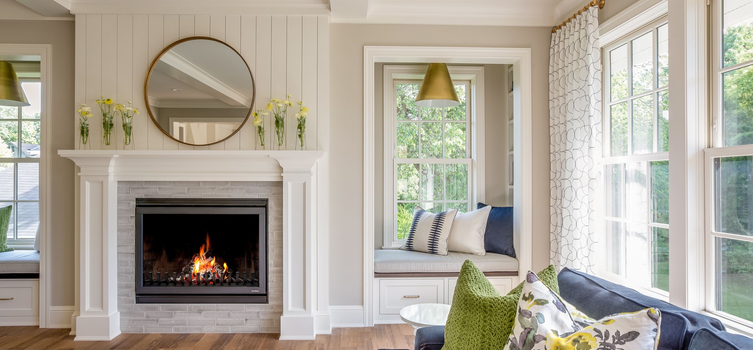 本棚や飾り棚を併設し、収納とインテリアを兼ねた空間のアクセントとしても愉しめる窓下のベンチシートは、読書をしたり、コーヒーを飲んだり、家族が思い思いに過ごせる場所。ただぼんやりと外を眺めるのも特別な時間に。